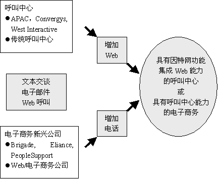 這些服務(wù)商對(duì)于那些已經(jīng)利用他們處理呼叫的企業(yè)來(lái)講,會(huì)成為首選的服務(wù)商。傳統(tǒng)的呼叫中心在尋找那些理解他們的需求的供應(yīng)商,他們可能會(huì)選擇具有電子商務(wù)服務(wù)處理能力的傳統(tǒng)服務(wù)公司。也許新興公司在評(píng)估這些公司提供的經(jīng)驗(yàn),穩(wěn)定性,和資源完整性后,也會(huì)選擇他們。